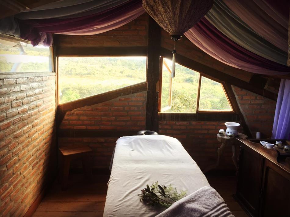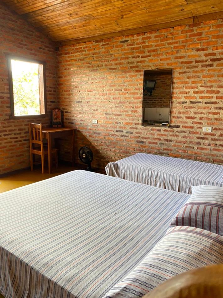 Os chalés são equipados com tv, frigobar, micro-ondas, ventilador.
