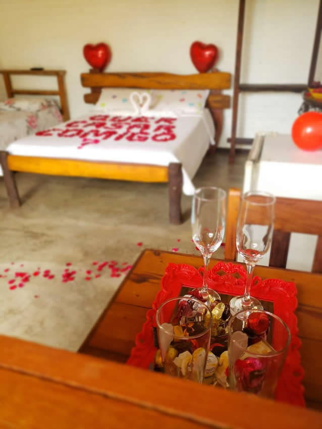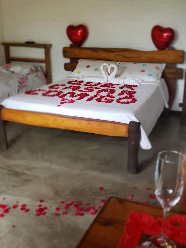 Para completar a estadia, é possível contratar uma linda decoração romântica.